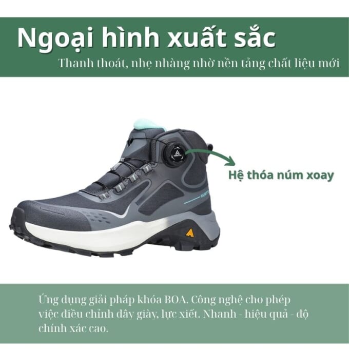 • Khoá xoay – BOA xiết linh hoạt, lực xiết tạo sự thoải mái khi mang